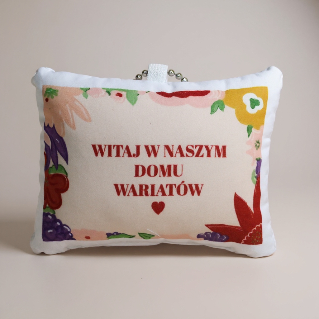 Miękka poduszka z kulkowym mocnym łańcuszkiem to mniejsza wersja produktów naszej marki mogąca służyć jako brelok, mała poduszka w podróży lub np wisiorek przy torbie. Jest uroczym prezentem i świetną ozdobą w domu (u nas wisi na kominku 🙂 ) Zastosowań ma mnóstwo, jest zgrabna, praktyczna i mięciutka. Wypełnienie antyalergiczne zapewnia bezpieczeństwo najmłodszych.