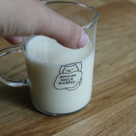 Praktyczna szklanka z uszkiem o pojemności 220 ml z uroczym nadrukiem śpiącego kotka i napisem „Kocham gnicie w łóżku”. Wykonana z trwałego ale cienkiego i delikatnego szkła, idealna zarówno do gorących, jak i zimnych napojów – kawy, herbaty, ziół czy soków. Ergonomiczne uszko zapewnia wygodne trzymanie, a minimalistyczny design sprawia, że szklanka świetnie odnajdzie się…