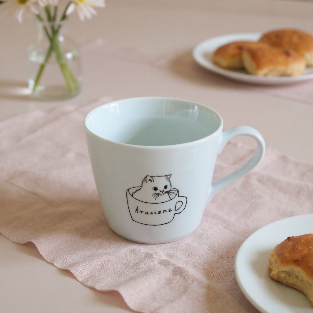 Kubek z kotkiem w filiżance. Pomieści 220ml smacznej kawusi. Piękny dodatek do Twojej kuchni i najsłodszy prezent