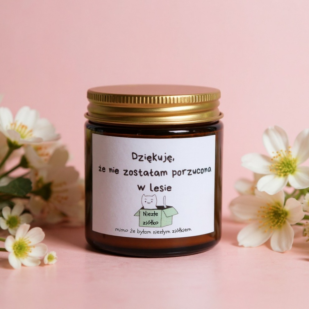 Ta świeca to małe „dziękuję” za wielką cierpliwość. Dla mamy, która nie tylko zna wszystkie Twoje dramy, ale i nadal Cię kocha. Pachnie lepiej niż Twoje dzieciństwo i przypomina, że jesteś jej największym wyzwaniem — i najfajniejszą przygodą.